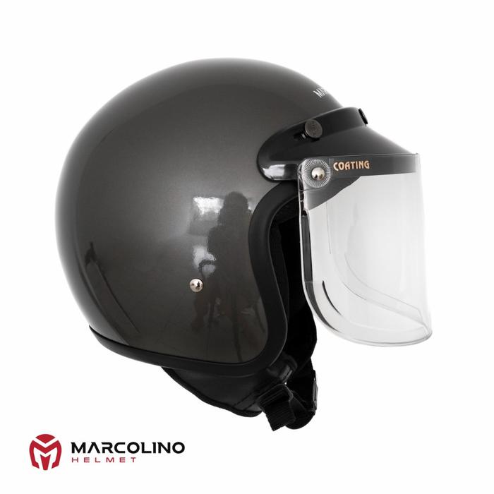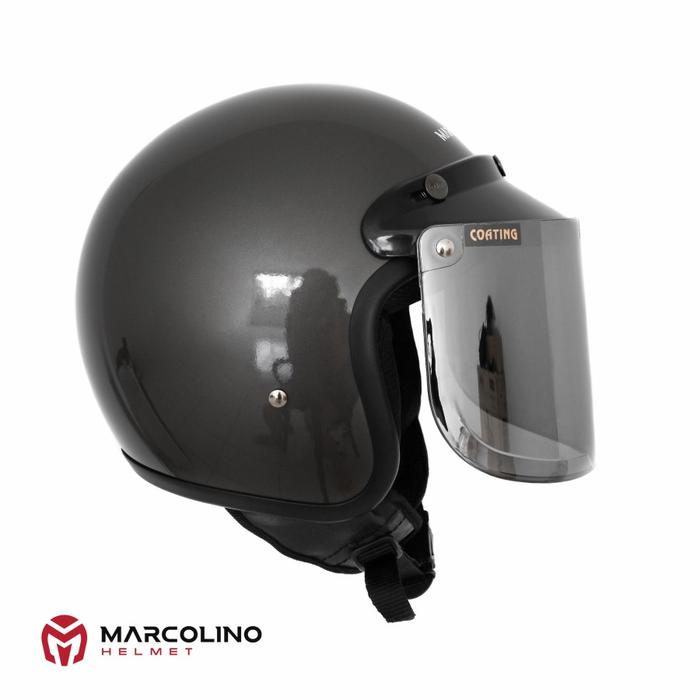 Helm Bogo Retro MARCOLINO EDITION SNI GREY GLOSSY FLAT VISOR Helmet Motorcycle
