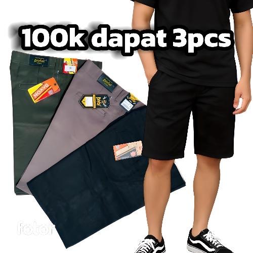 Paket 3 Celana Pendek Chinos Pria – 100K Dapat 3 Pcs – Bahan American Drill Non-Stretch Size Super Jumbo - Hitam, Abu, K