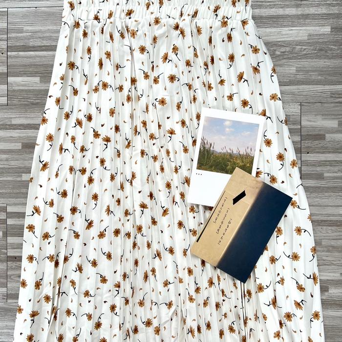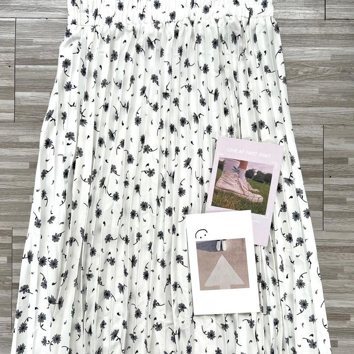 Skirt Plisket Bunga Wanita Korea / Ro Bawahan K Hyget Premium Allsize Dewasa A-Line Fit Motif - Rok Plisket Bw Abu