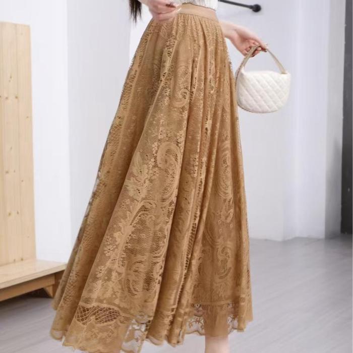 Shenel Brukat Bkk Lace Skirt Kondangan 6185 Pesta Panjang Rok Mayung - Hitam, Midi 83Cm