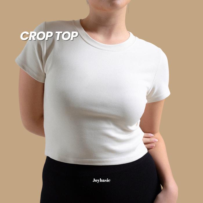 Joybasic Kaos Polos Premium Cotton Nyaman Dikulit - Crop Top - M, Cream