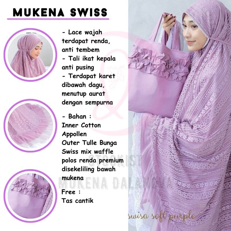 Mukena Swiss Dalanova Terbaru Size Dewasa Jumbo Bahan Apollen Cotton Dan Tulle Bunga Ala Swiss Free Gift