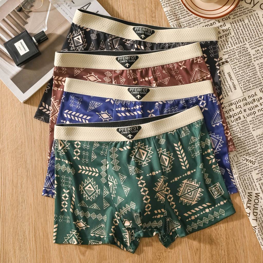 FLASH SALE PAKET 4 PCS Celana Dalam Pria Boxer Motif Tribal Geometrik Modern Poliester Spandeks CDP3303 Bahan Nyaman Desain Stylish Royal Victor