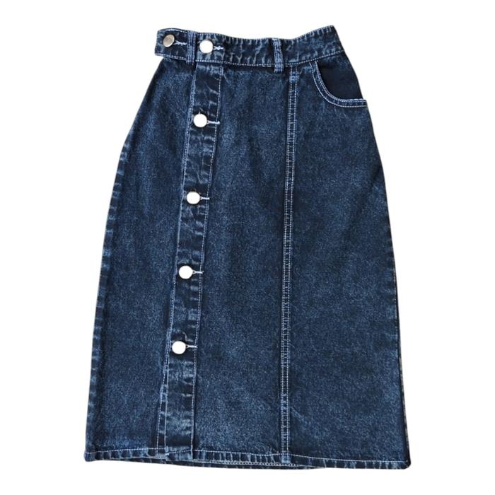 Rok Jeans Panjang Laura Anak Perempuan Usia 2-9 Tahun / Rok Span Panjang Model Depan Kancing Kekinian - Rok Laura Kancin