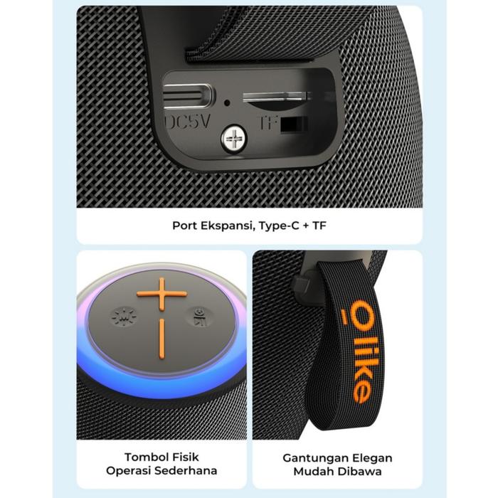 Olike Sf11 Wireless Portable Bluetooth Speaker Bt 5.3 Rgb Light 1800Mah Fm Radio Bass Max
