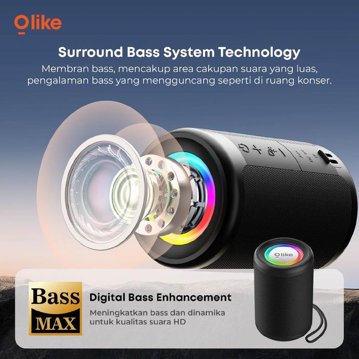 Olike Speaker Bluetooth Sf9 With Led Light Hd Audio Stereo Bass Max | Ipx4 Water Resistant | 8 Jam Playtime | Bluetooth
