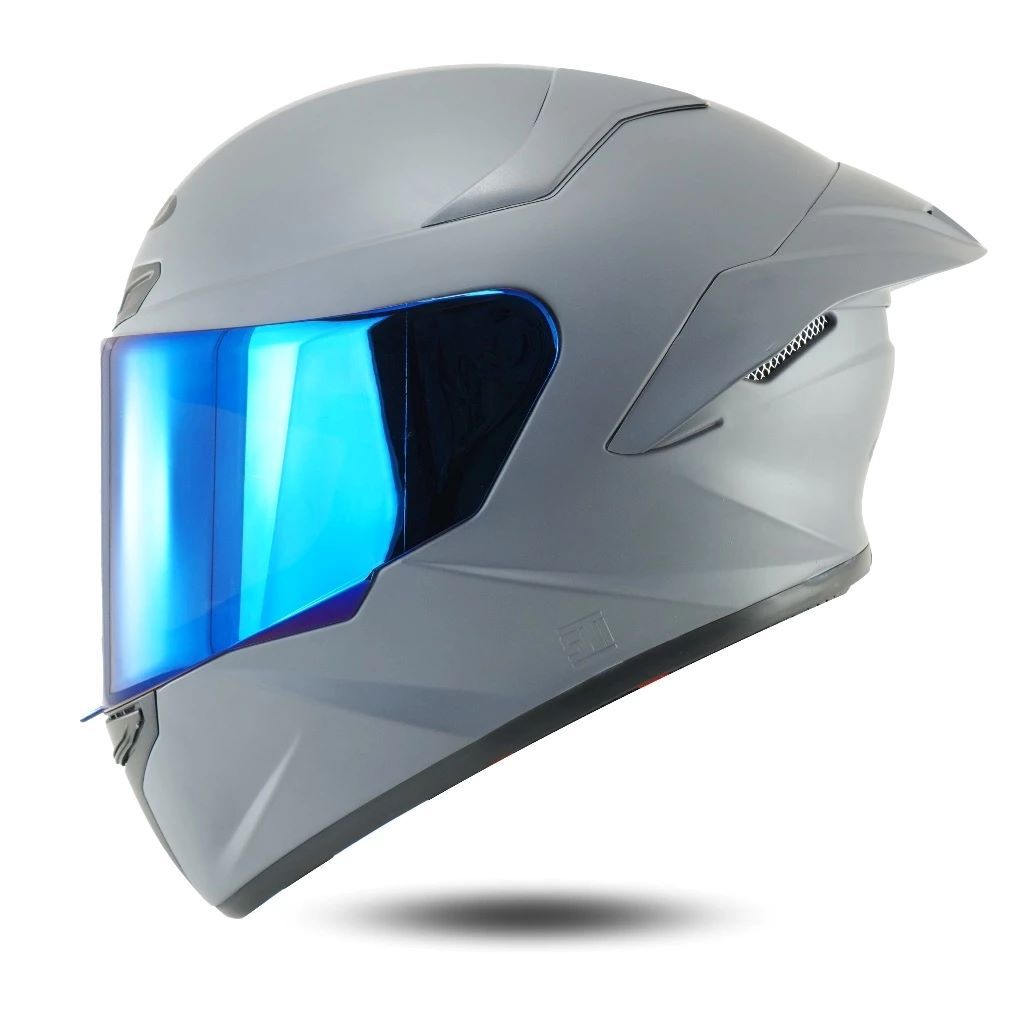 Helm Mla Crypton Full Face Terbaru Solid Hitam Glosy Kaca Visor Iridium Blue/Helm Full Face Mla Original