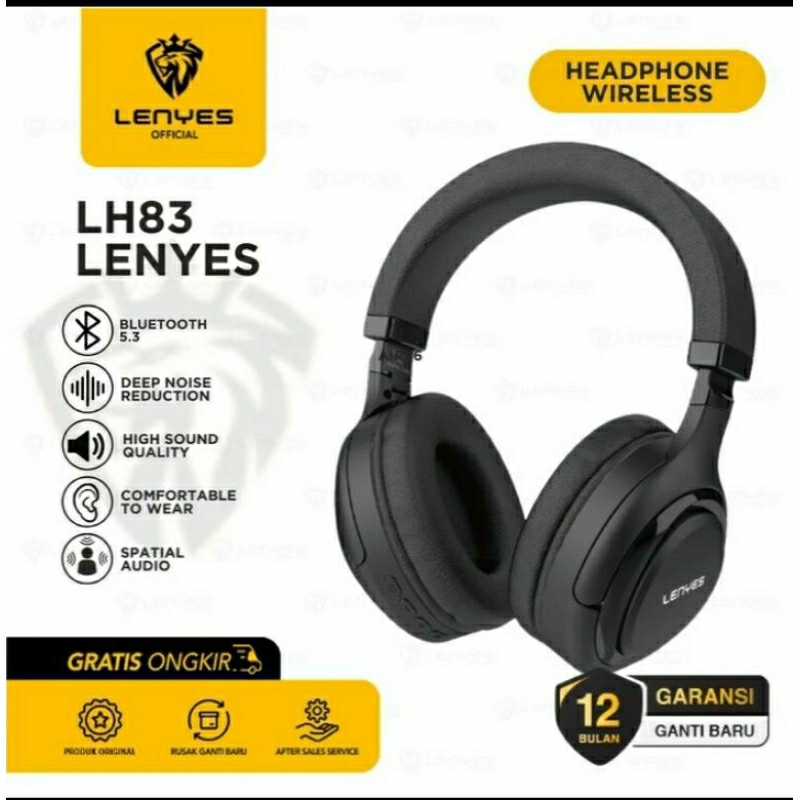 LENYES LH83 Headphone Bando Bluetooth V5.3 Headset Wireless Heavy Bass Hifi Stereo Earphone With Mic