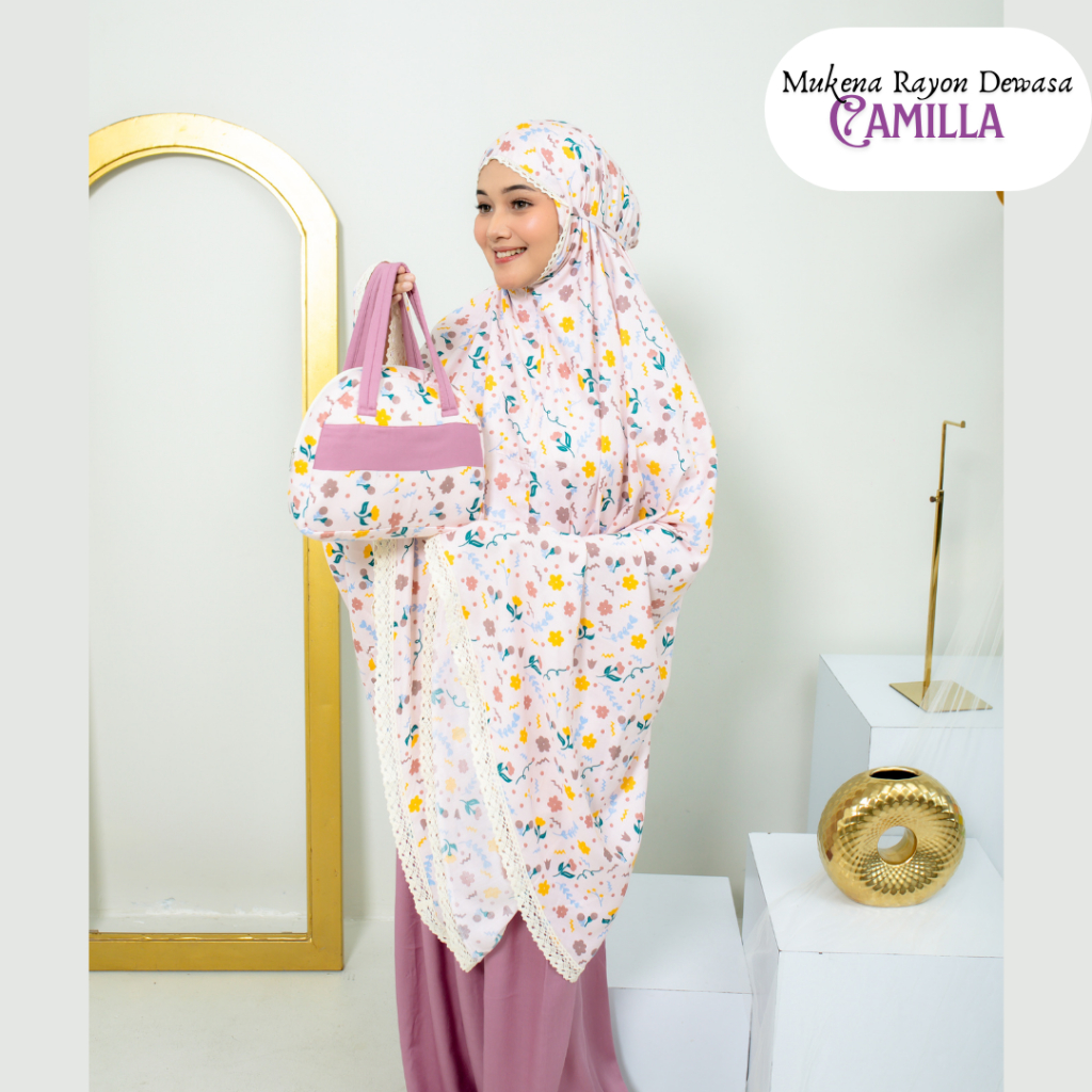 Mukena Dewasa Katun Rayon Premium 2In1 Renda Motif Bahan Adem Lembut