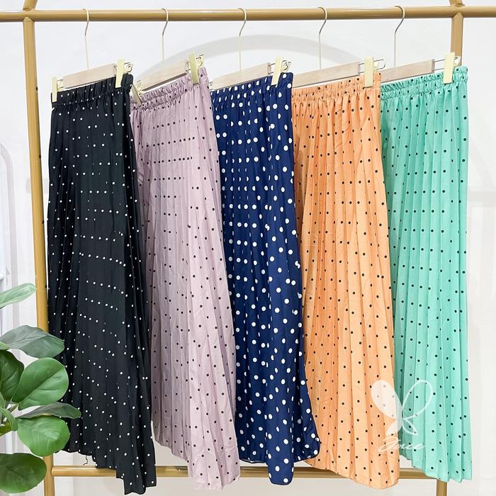 Jace Rok Plisket Motif Rok Motif Rok Bunga Mayung Hyget Jumbo Bunga Setrip Polkadot Karet Panjang Variasi - Hana Black