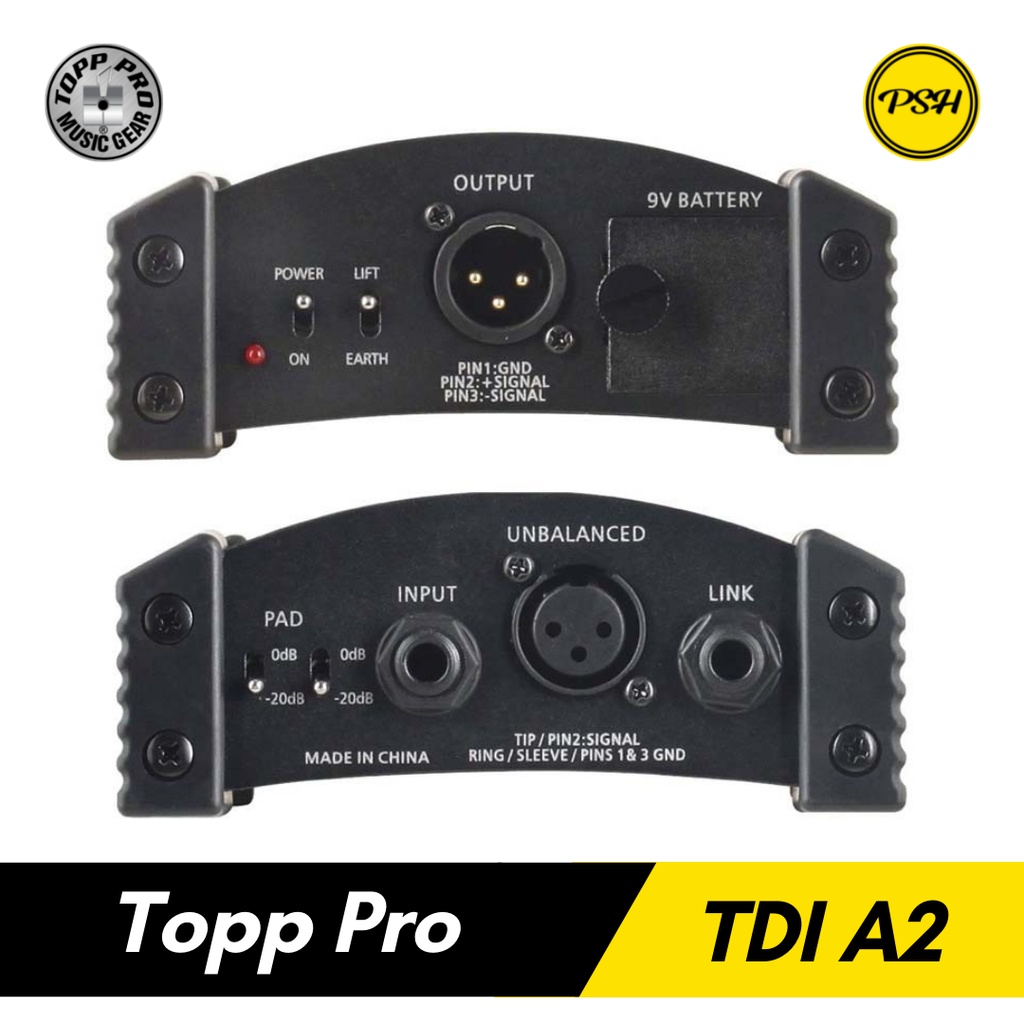 Topp Pro TDI A2 TDIA2 DI Box Direct Box 1 Channel Phantom Battery 9V untuk Keyboard Guitar Gitar Bass