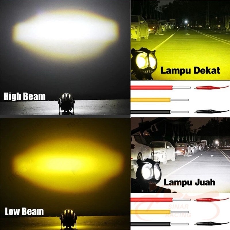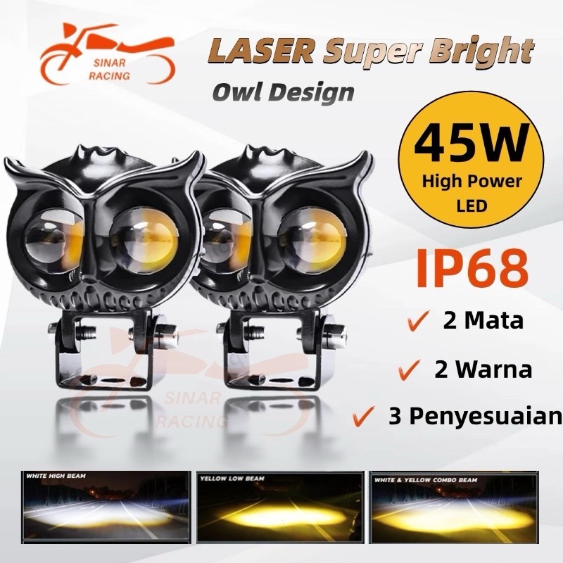 Lampu Motor Sinar Racing Lampu Sorot Tembak Laser Owl LED 45W D2 2 Warna Putih Kuning