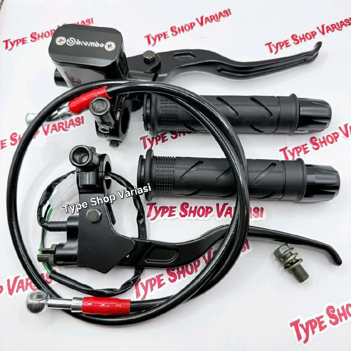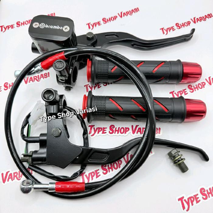 Paket 4In1 Master Rem Tabung Tipe Kotak Dan Oval+ Handgrip Sisik + Jalu Stang Cnc + Selang Rem 95Cm Universal Handle Kop