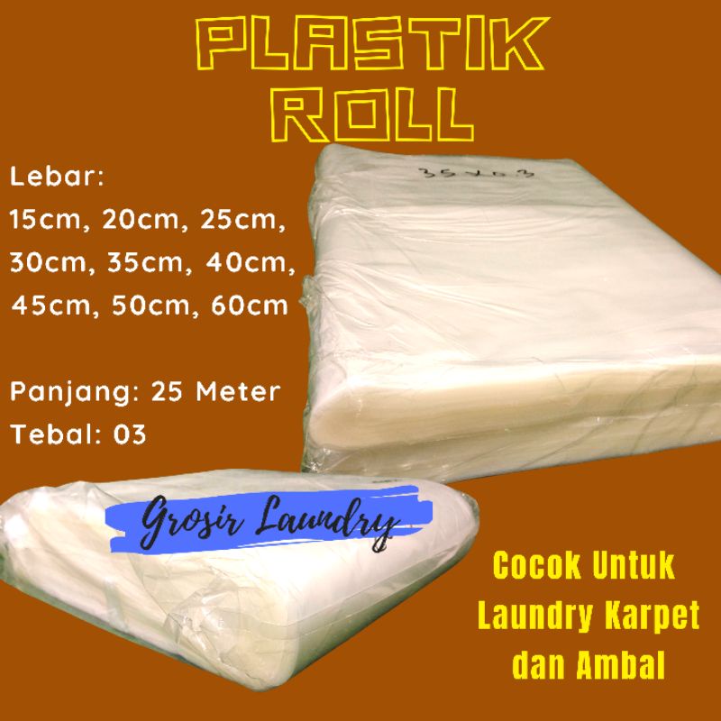 Plastik Roll Laundry Packing Karpet Pembungkus Baju Lebar 35cm-40cm-45cm-50cm-60cm Panjang 25 Meter