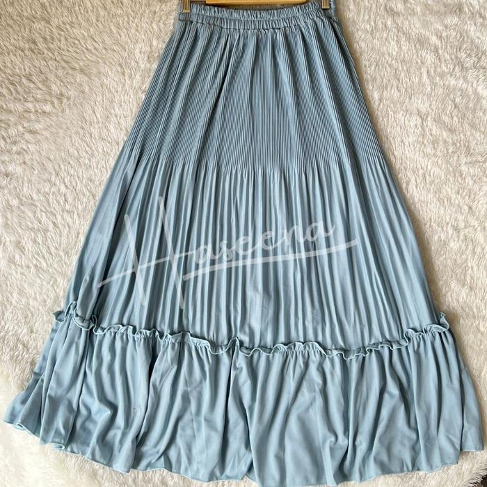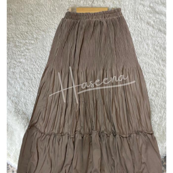 Haseena Rok Plisket Susun Maiza Skirt Wanita Ruffle Anti Nerawang Bawahan Wanita Muslim Polos Panjang - Putih