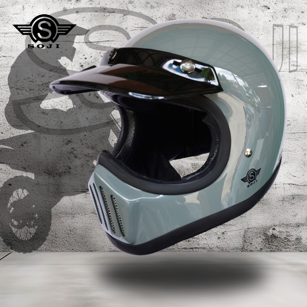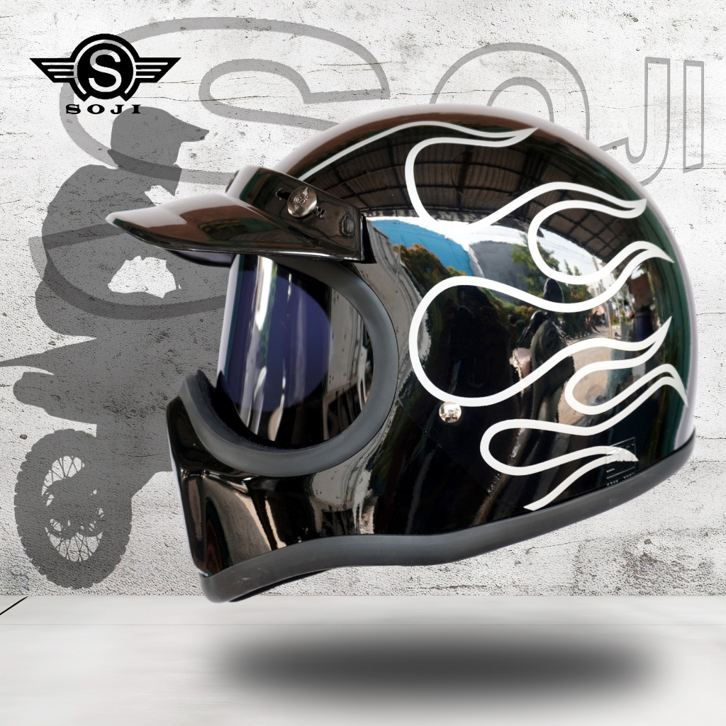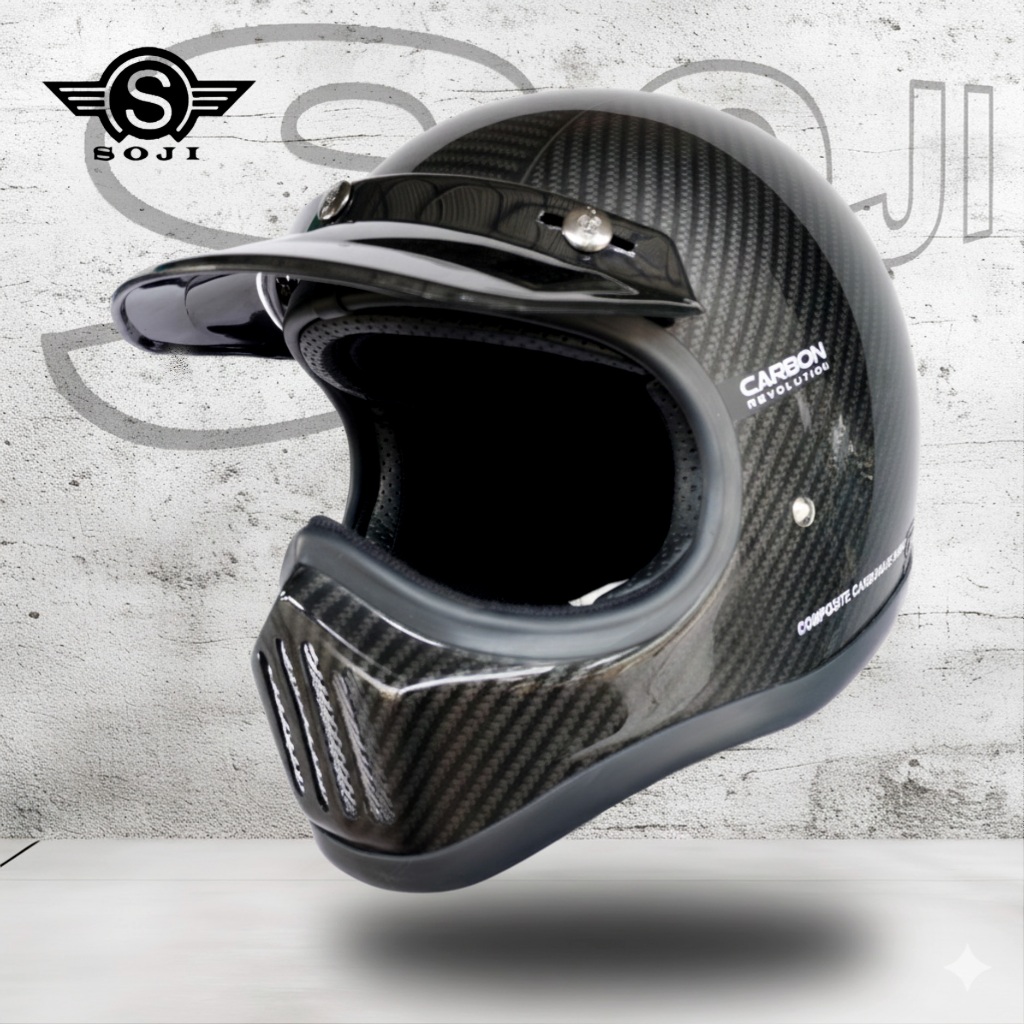 SOJI Helm Cakil Full Face Carrbon, Flame Api Justin dan Polos motocross SNI