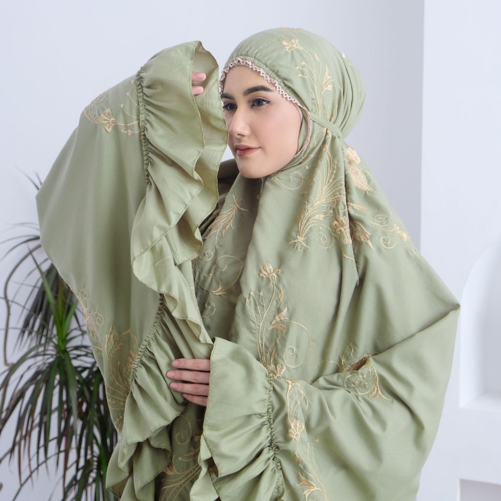 Delikamode - Mukena Dewasa Bordir Resleting 2In1 Katun Rempel Premium Aqeella Series