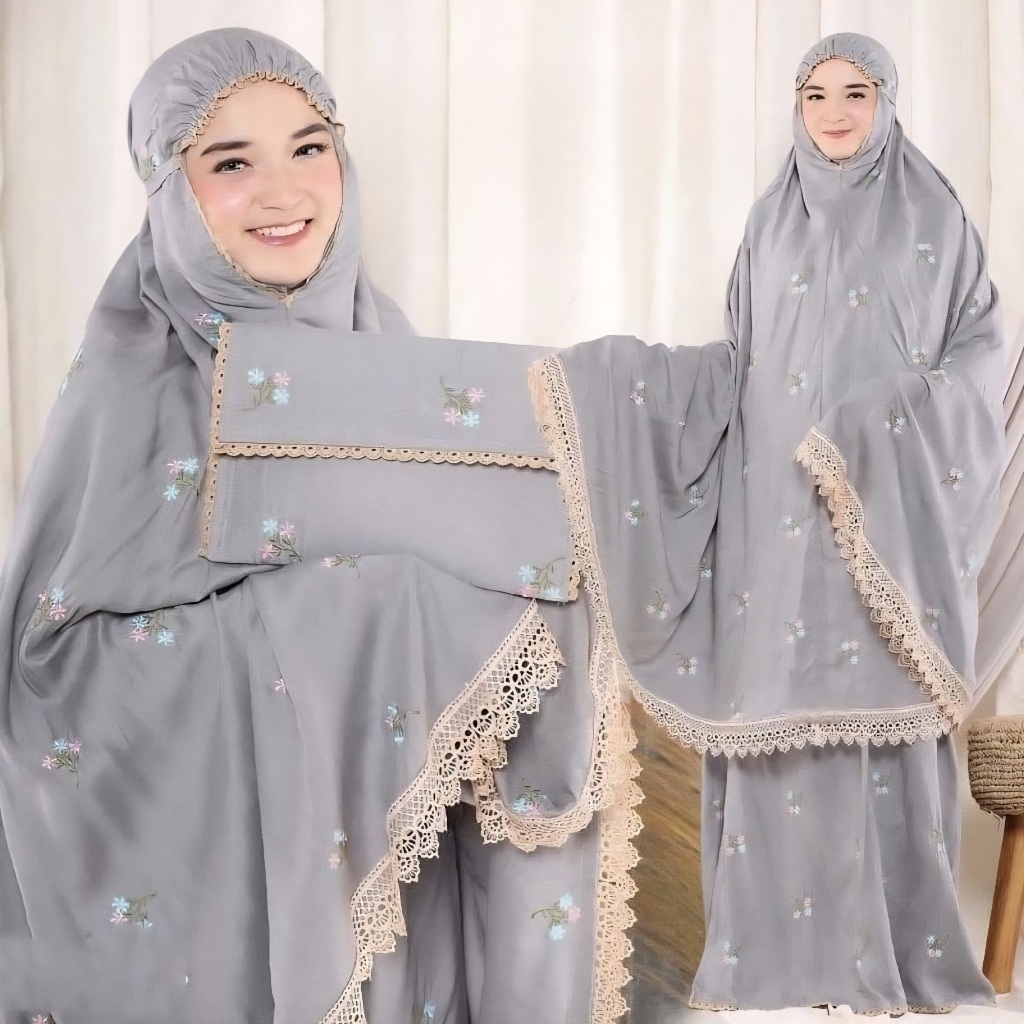 Mukena Vinca Rayon Premium Full Bordir Bunga Melati Renda Jumbo