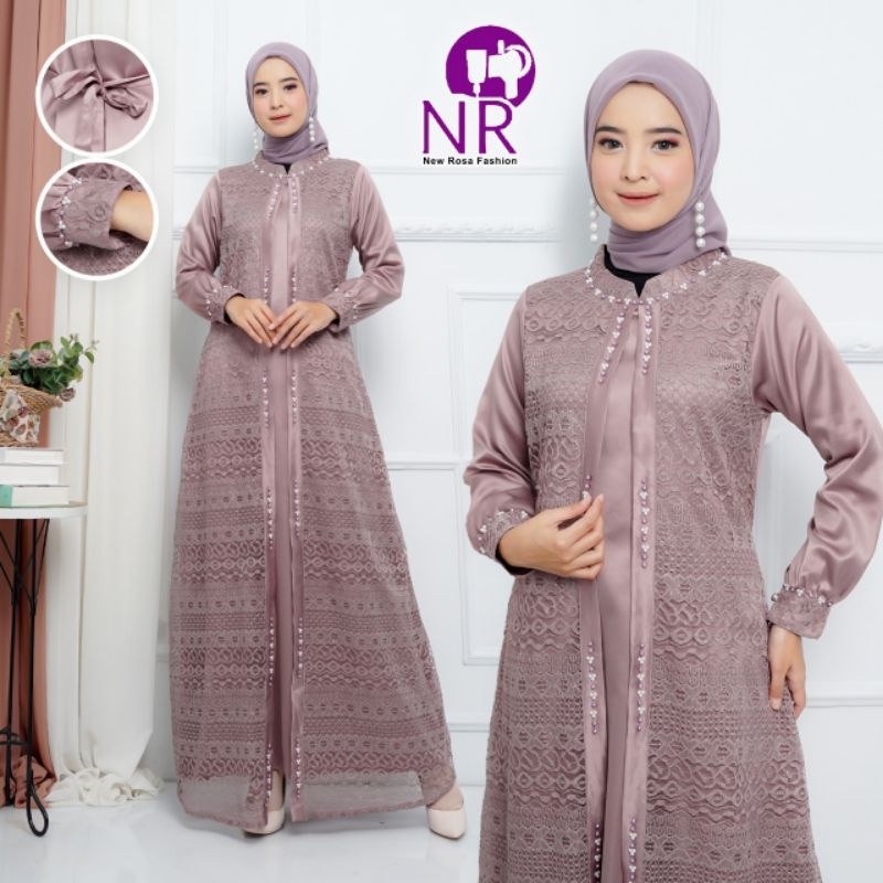 Sabyan Dress With Beads / Gamis Cantik Model Rompi Brukat With Beads BR01 Uk. M s/d XXXL Jumbo / Gamis Brukat Muslim / Gamis Muslim Kekinian