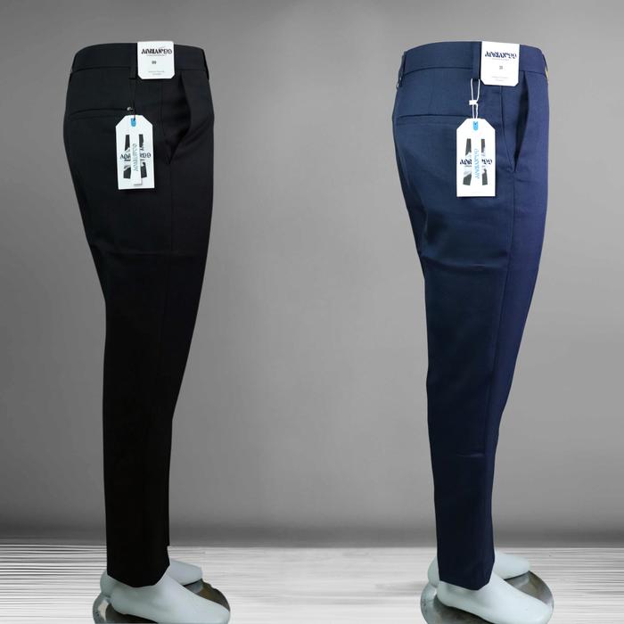 Paket Bundling 1 Paket Isi 2 Celana Panjang Pria Slimfit Formal Kantor Kerja Hitam Abu Tua Muda Navy Polos Kain Semi Wol