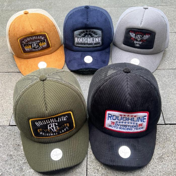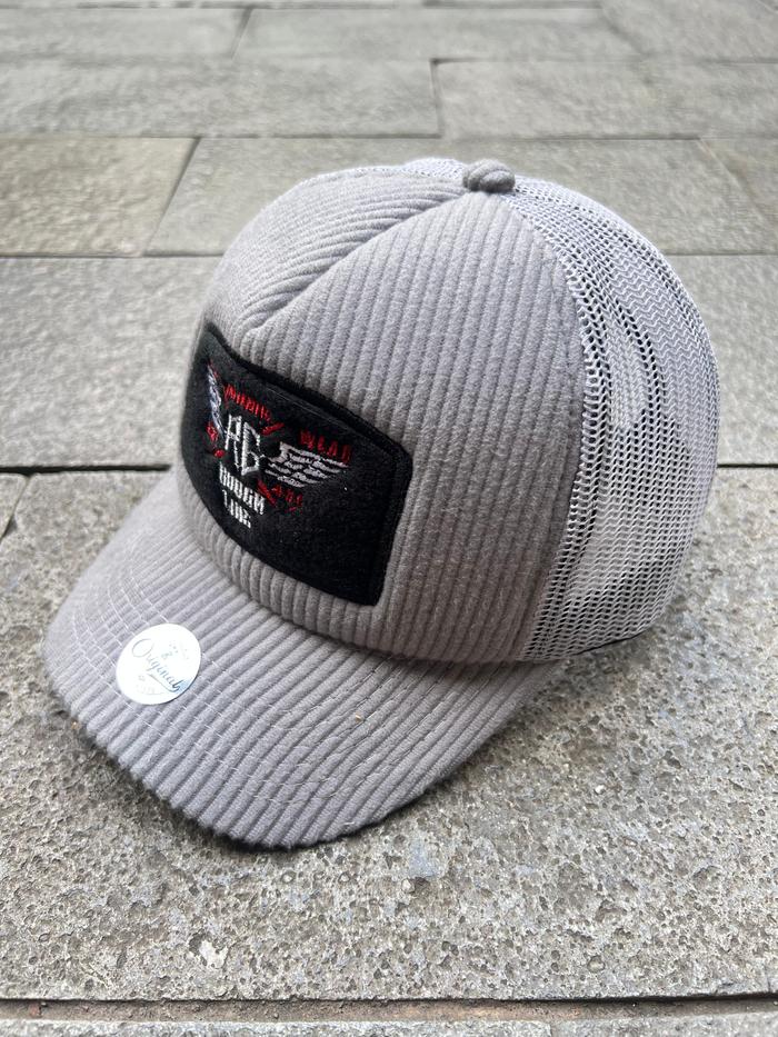 Topi Trucker Corduroy Lidah Pendek Premium Rg - Hitam Caduroy