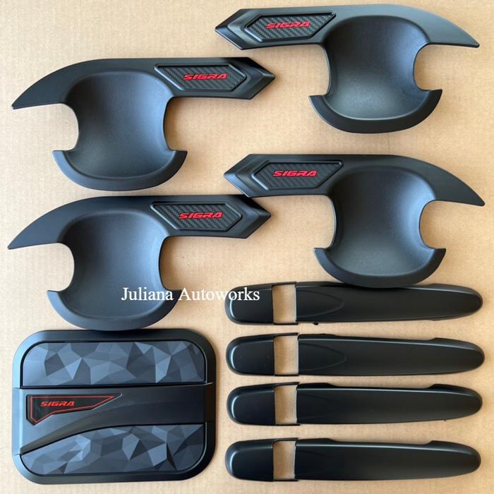 PAKET OUTER HANDLE TANK COVER BENSIN SIGRA HITAM DOFF