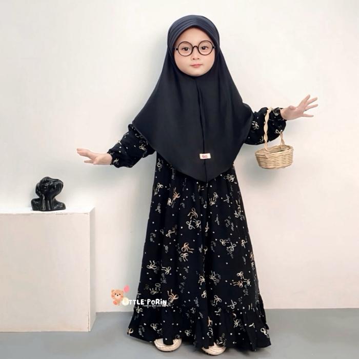 Little Porin - Syakila Gamis Anak 1 - 12 Tahun Katun Rayon Couple (Harga Terpisah) - Lime, S