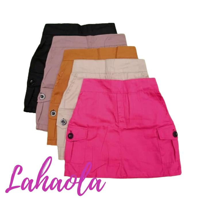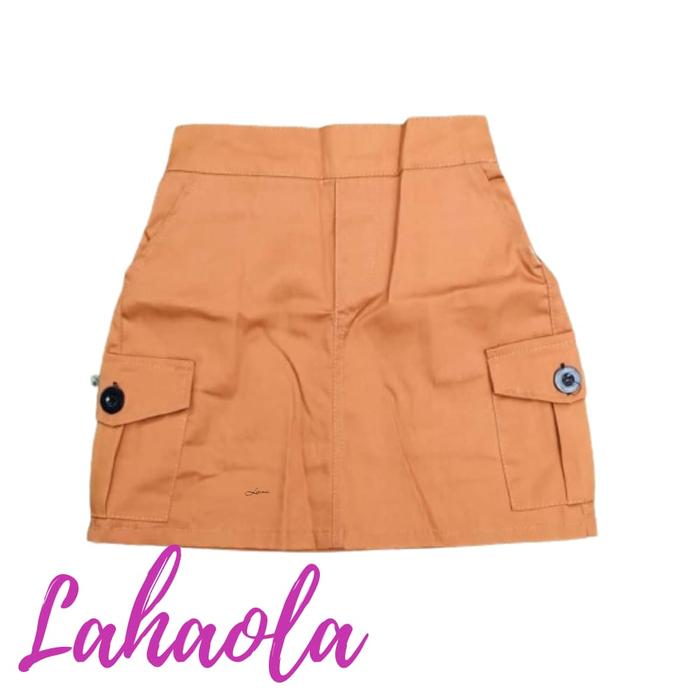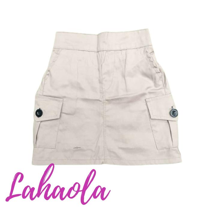 Rok Cargo Mini Skirt 1-12 Tahun American Drill Katun Nyaman Hitam Abu Pink - Pink, S