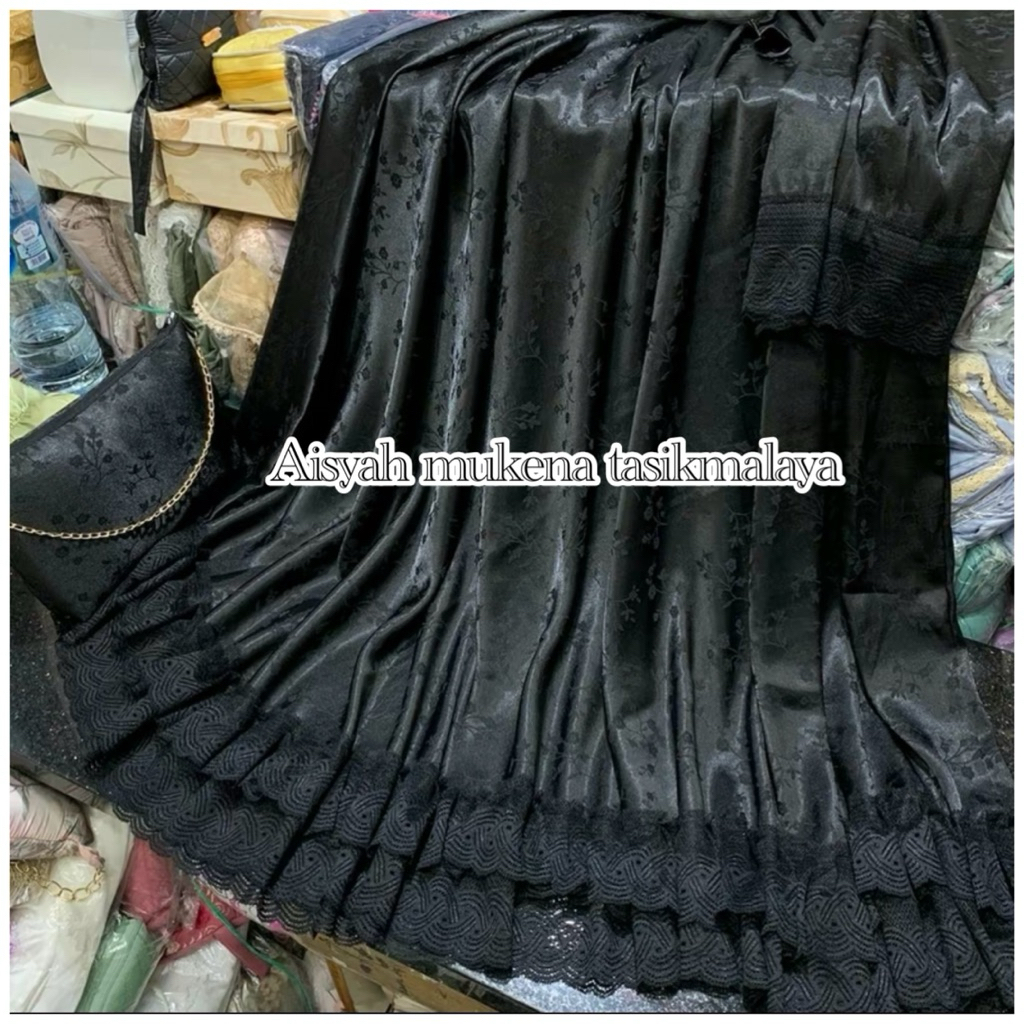 Mukena Yura Series Bahan Sutra Armany Silk Jaguar Mix Renda Karet Bunga Mewah