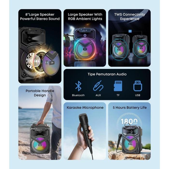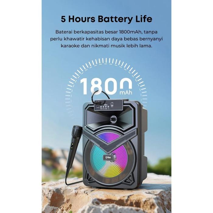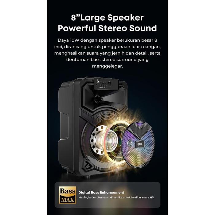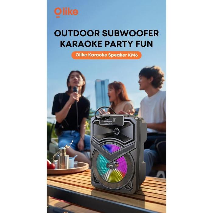 Olike Speaker Bluetooth Km6 10W Bass Stereo 5Jam Playing Time + Tws Rgb | Karaoke Mic Aux Tf Usb