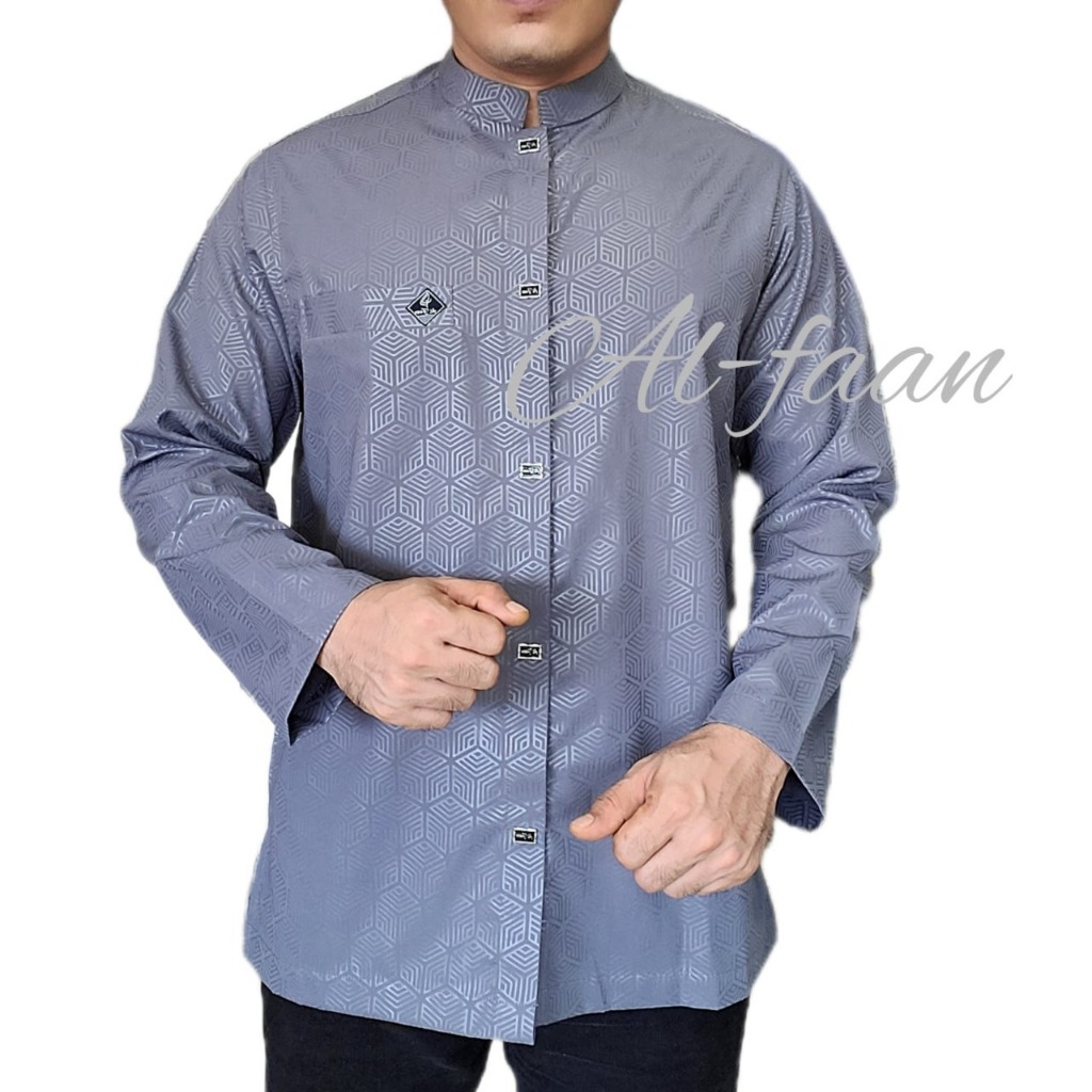 Baju Koko Lengan Panjang Pria Kemeja kemko atasan pria muslim motiff emboss by Alfaan
