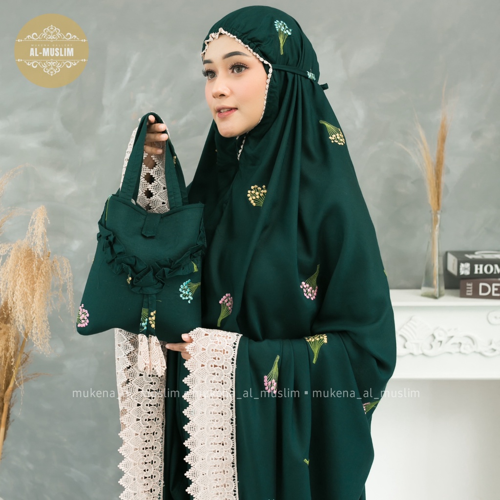Almuslim Mukena Dewasa Rayon Premium Motif Bordir Bunga Camila Renda Jumbo
