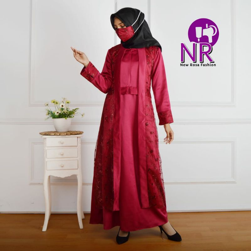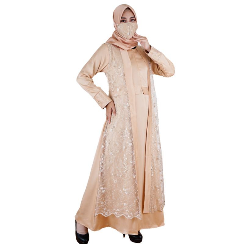 Gamis TR06 Brukat Tile Muslim / Dress Muslim Uk.M-XXXL(JUMBO)[Free Masker]