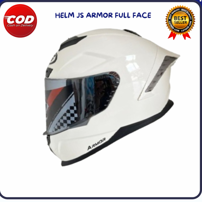 HELM JS ARMOR FULL FACE CARBON GLOSY PAKET GANTENG VISOR SILVER -Helm Pria Dewasa/Helm Keren