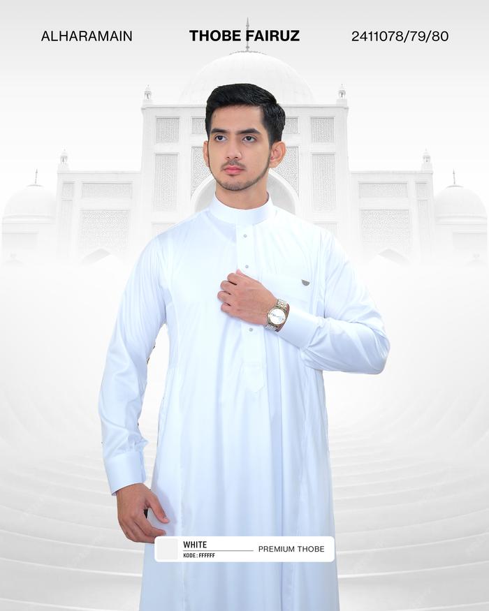 AL Haramain Series Polyester Thobe Fairuz Jubah / Gamis Pria Dewasa (2411078/79/80) | Putih - Putih 07880 40 S (remaja)