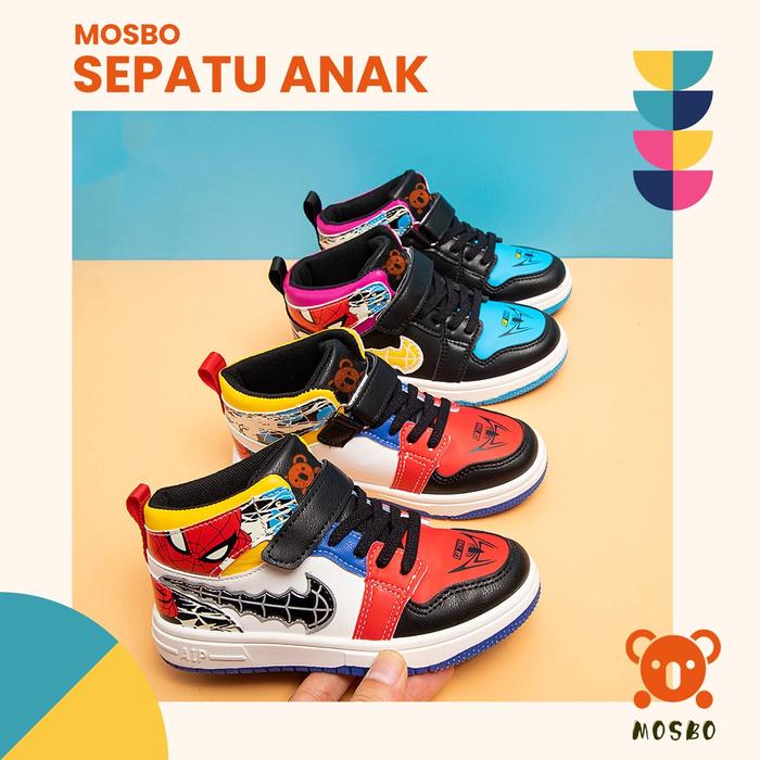MOSBO Sepatu Boot Anak Cowok Cewek Sepatu boots kulit Spiderman Sneakers Sekolah impor Model Terbaru SP_42 - Merah 36