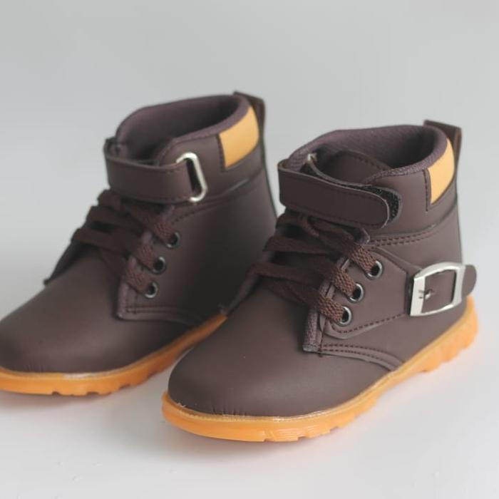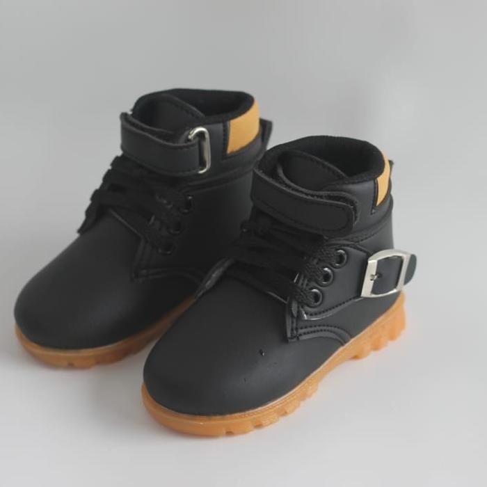 Sepatu Boots Anak RING TALI GESPER/Sepatu Boots Gesper Kaki karet mentah hak datar ( 1 cm atau kurang) - HITAM 22