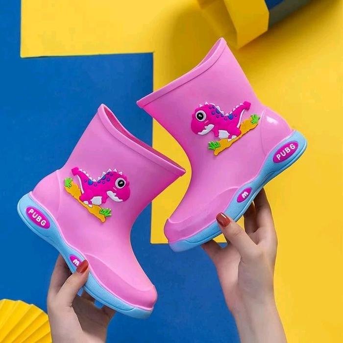 Sepatu Boots Anak Import Waterproof Anti Air Motif Dino - Sepatu Hujan Anti Air Anak Laki & Perempuan - Pink Dino 27