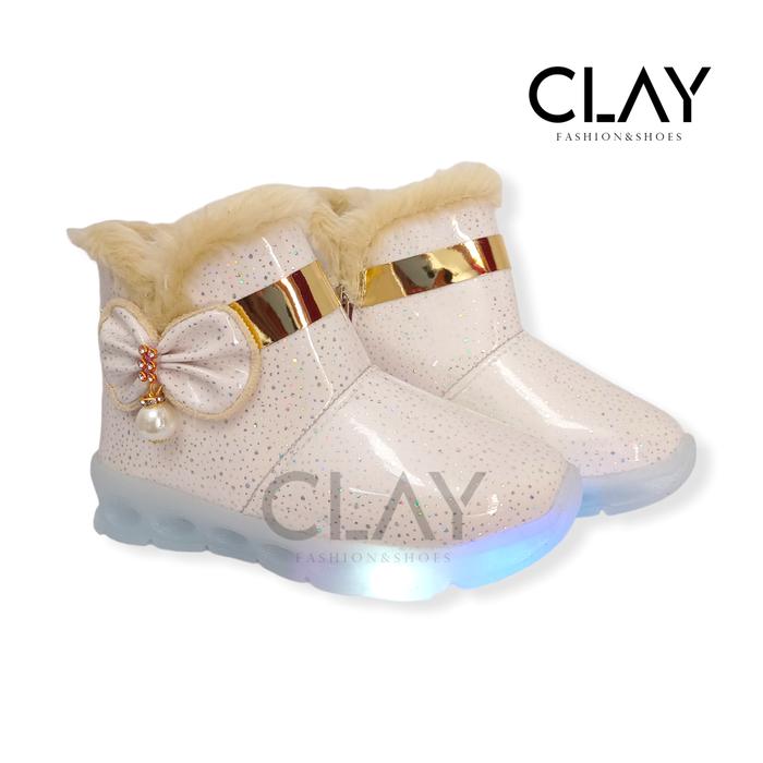 Sepatu Boots Anak LED Lampu Perempuan Pita Fashion - Hitam 22