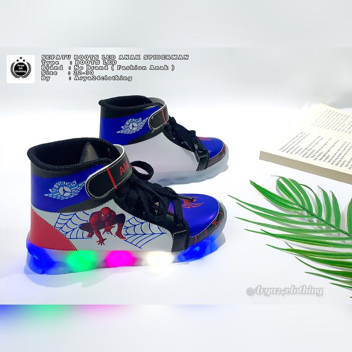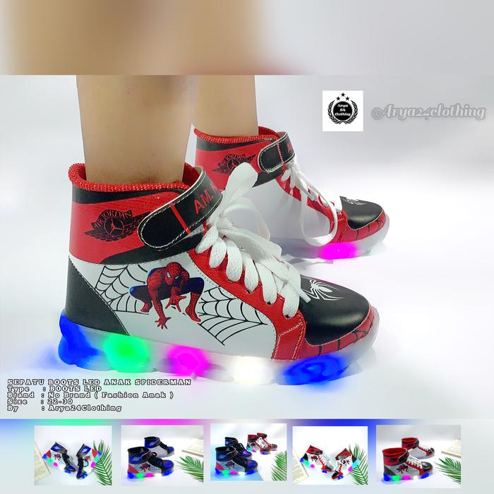 Sepatu Boot LED anak laki-laki motif spiderman TERBARU 2023 kaki fashion - MERAH 22