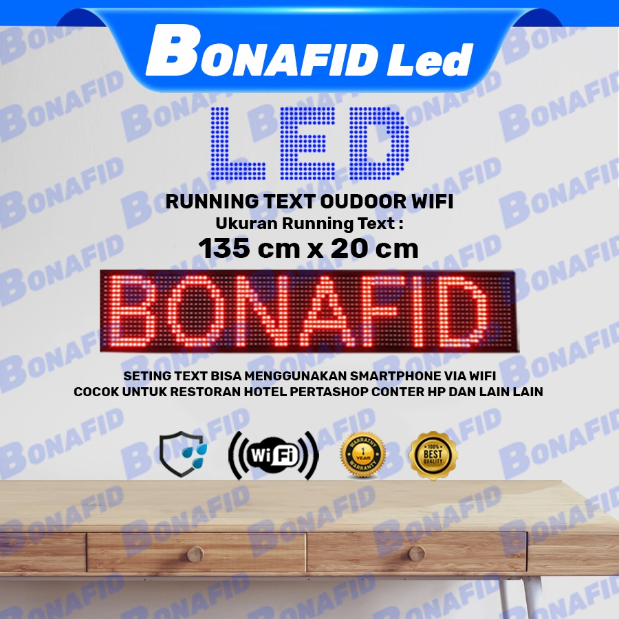WI-FI LED Running Text OUTDOOR Merah 140cm x 20 cm WIFI