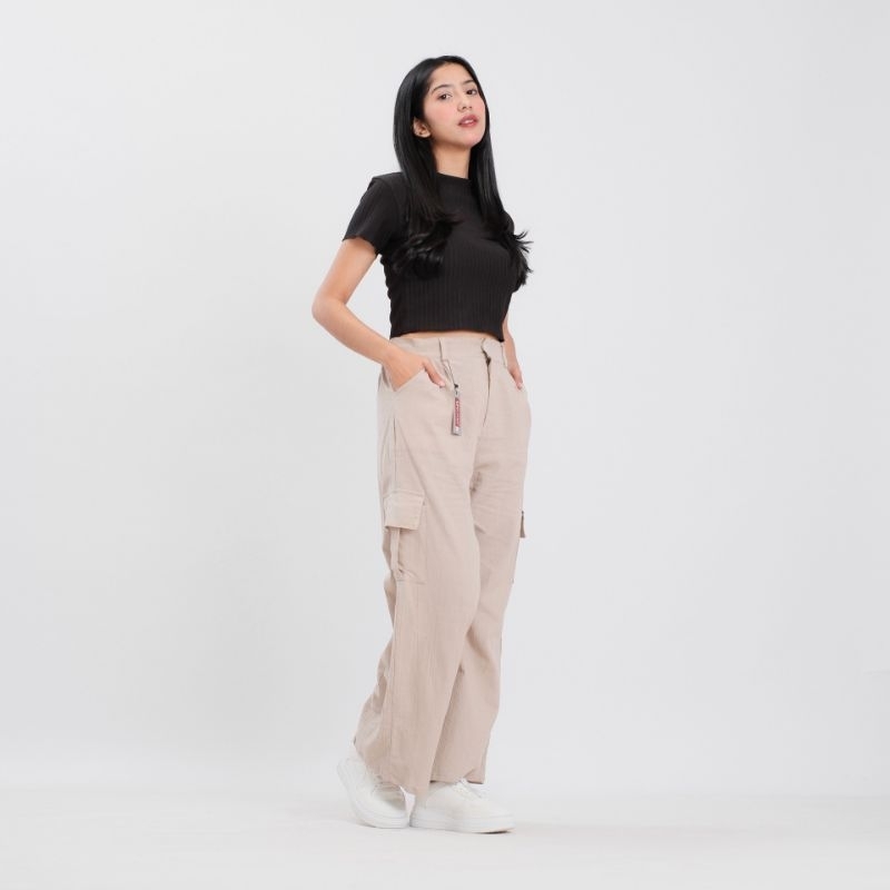 FLASH SALE Cargo Pants Celana Cargo Petite Linen Crinkle Hightwaist Baggy Cullote Pants