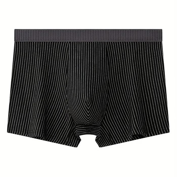 Paket 5Pcs Celana Dalam Boxer Pria Ice Silk Bergaris Bahan Tipis Lembut Halus Warna Hitam Mix - S (55-65Kg) - 5Pcs