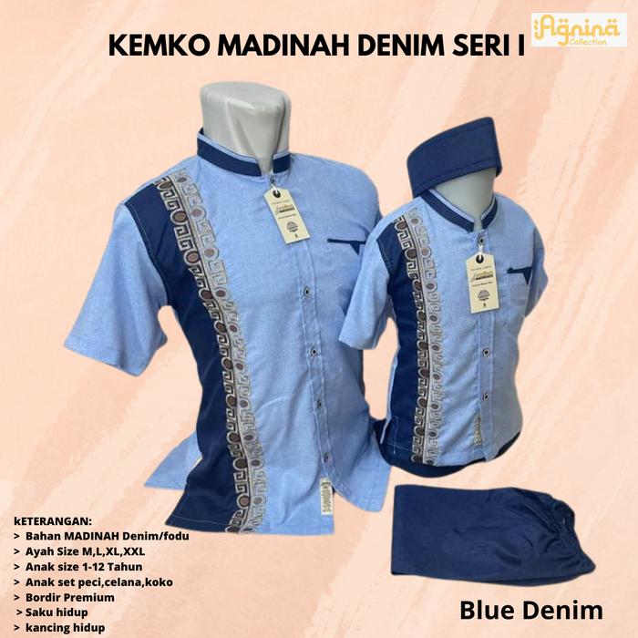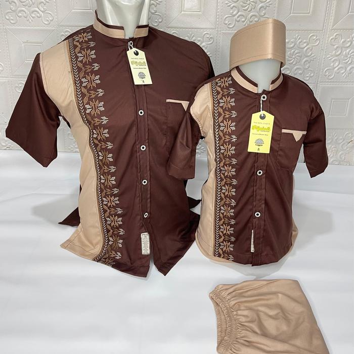 Agnina Kemeja Koko Couple Ayah Anak - Atasan Muslim Pria Bordir - Sarimbit Lebaran Kembaran Murah - Navy, Dewasa Ayah Sa