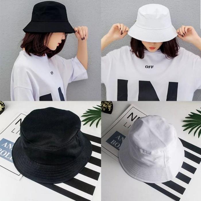 Topi Bucket Hat Polos Bolak Balik - Hitam
