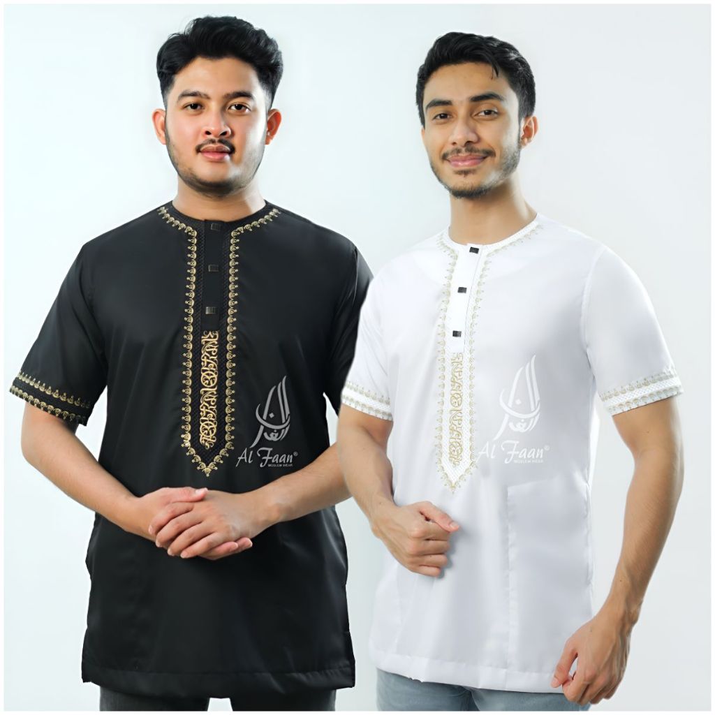 Baju Koko Pria Al-faan koko WASIL Lengan pendek Bordir kemko pria atasan muslim pria kemeja sporhem motif bordir Alzan K