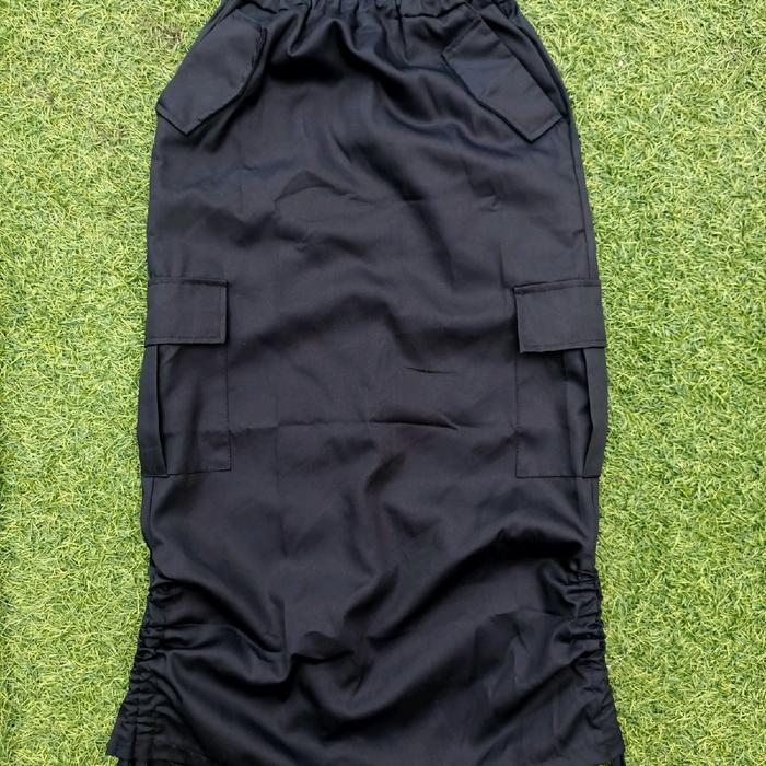 Rok Cargo Skirt Anak Perempuan 1-13 Tahun Panjang Katun Drill Cewek - Hitam, S 1-2Th