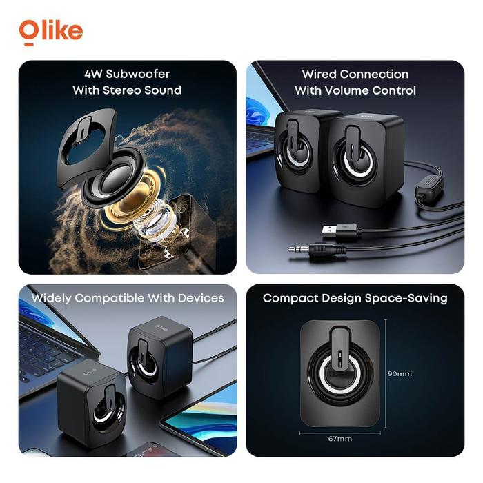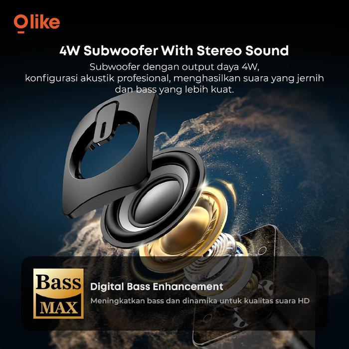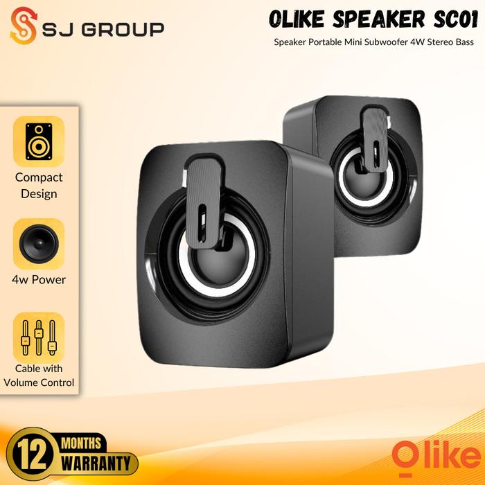 Olike Sc01 Speaker Mini Portable Stereo Bass Kuat 4W, Audio Jack 3.5Mm & Usb - Sc01 Black