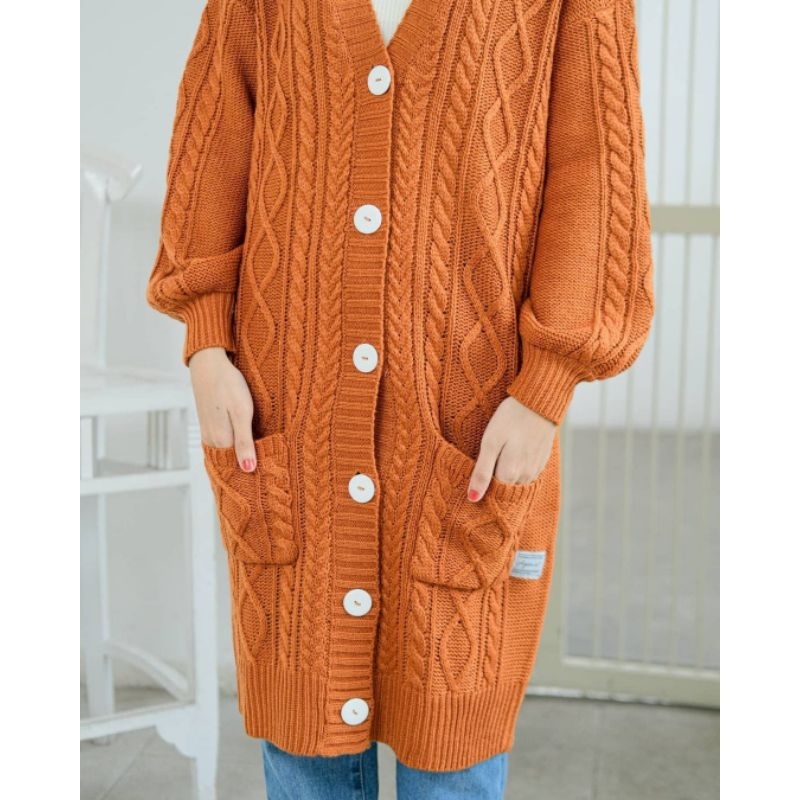 Long Cardi Outer Panjang Jaket Rajut Wanita Outer Rajut Panjang Long Kancing Saku Premium Tebal Lembut Halus Jahitan Rap
