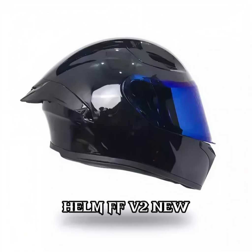 Helm Full Face MLA TTC Crypthon V2 Solid Terbaru Black Glosy Visor Blue (SNI) Helm Dewasa Pria Dan Wanita Bisa